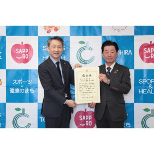 佐藤社長の寄付に対する感謝状受領のお知らせ