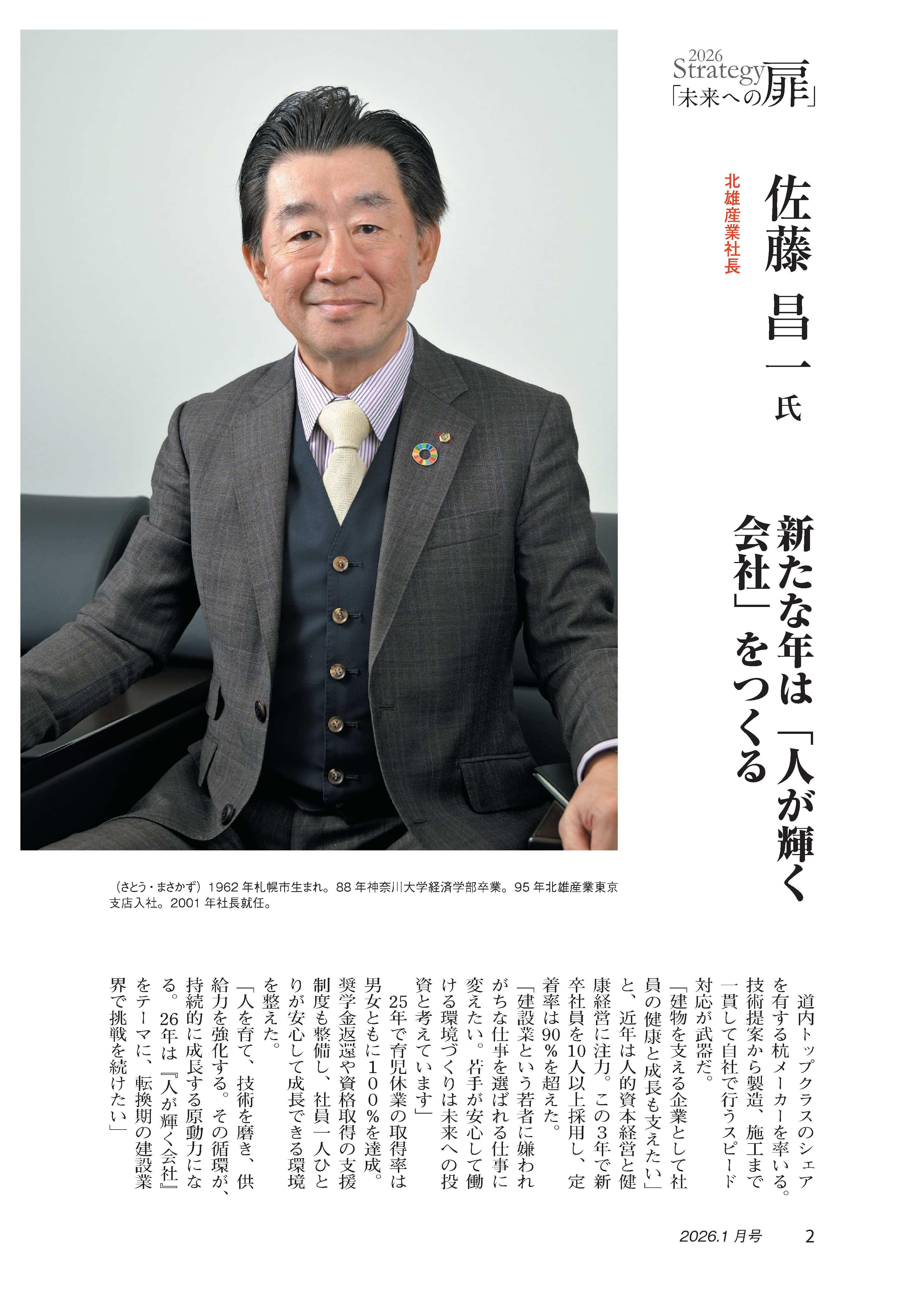 12月15日発刊、『財界さっぽろ』2026年新年特大号に当社社長佐藤昌一の記事が掲載されました。